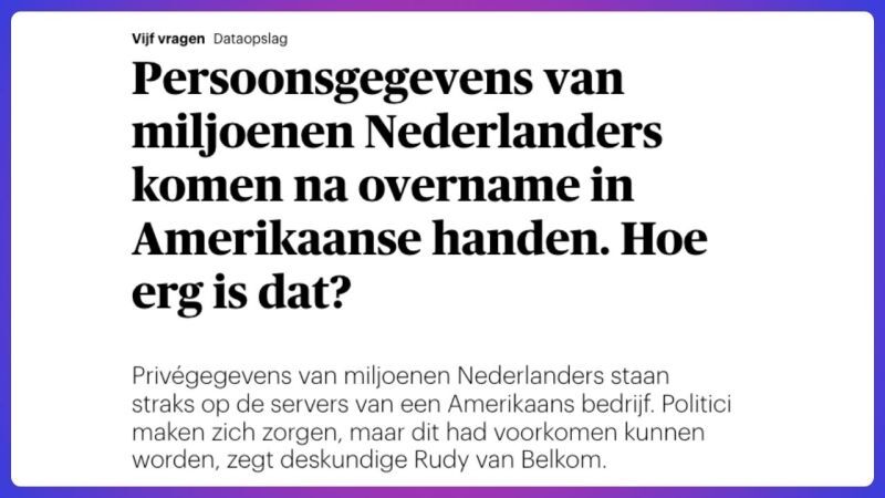 De data van overheidsinstanties horen niet bij een commercieel bedrijf. Dat zal altijd kiezen voor geld, niet voor publieke waarden. — Rudy van Belkom over de overname van DigiD in Trouw